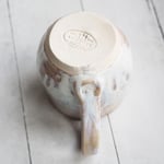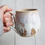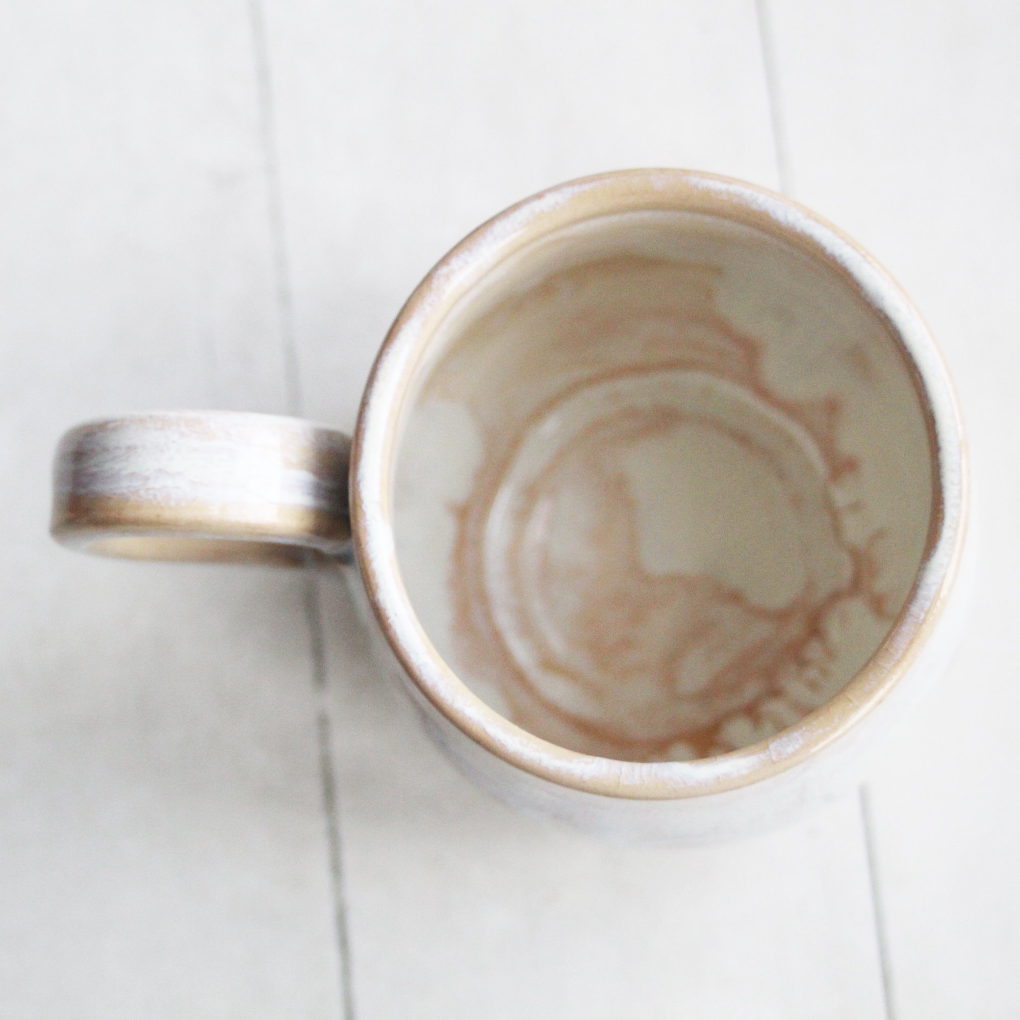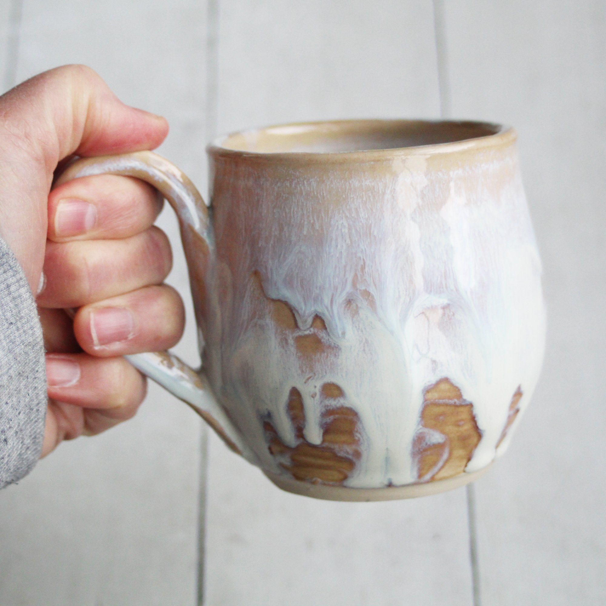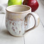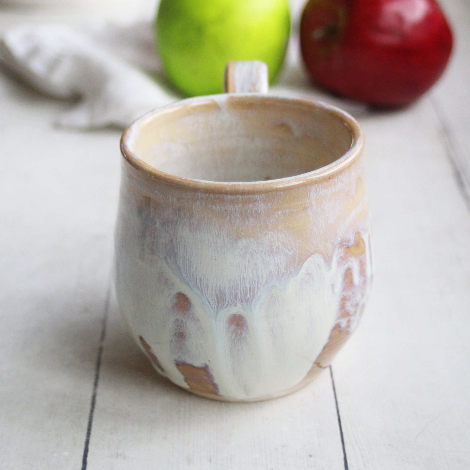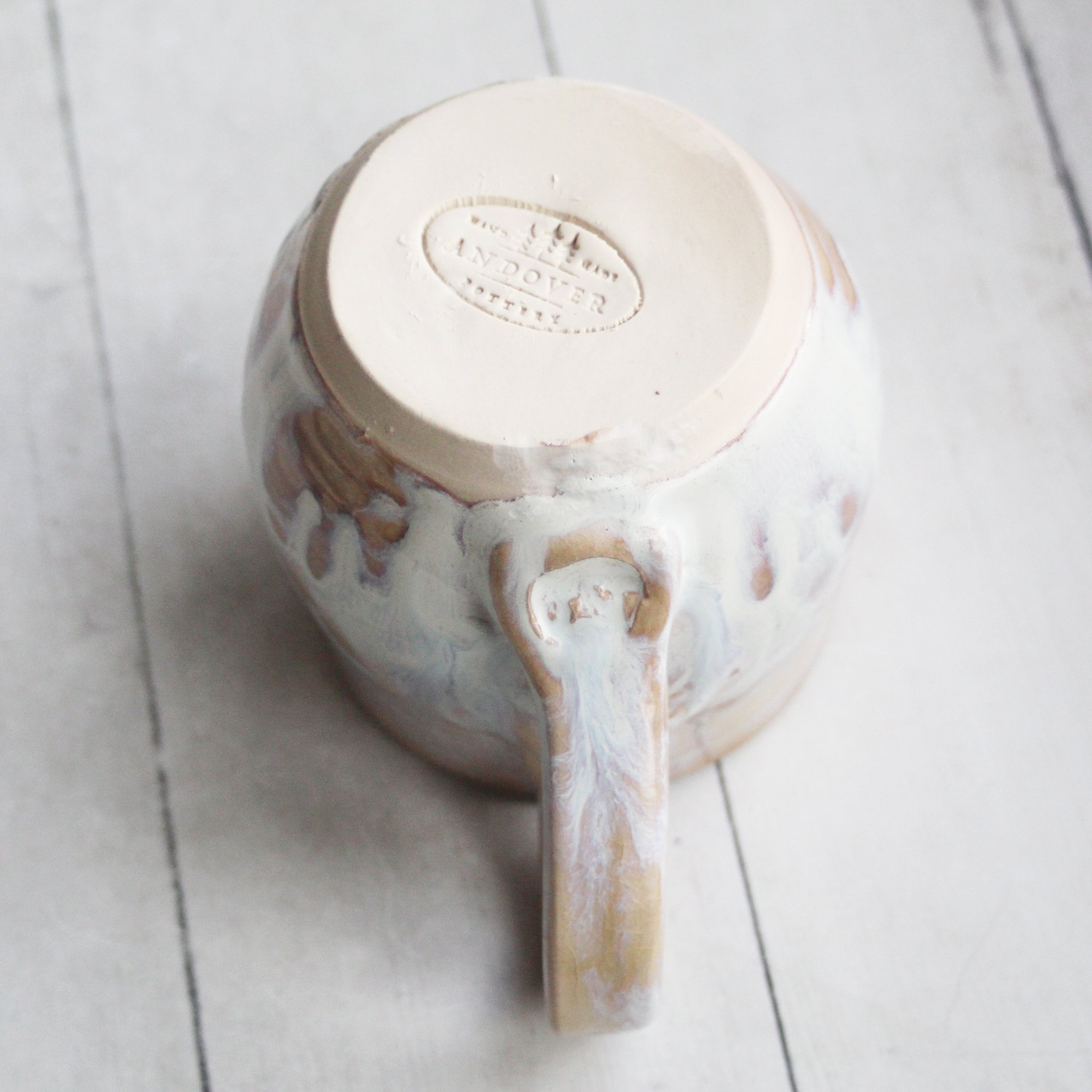 12 Ounce Rustic White and Ocher Stoneware Mug with Dripping Glazes, Coffee Cup, Made in USA