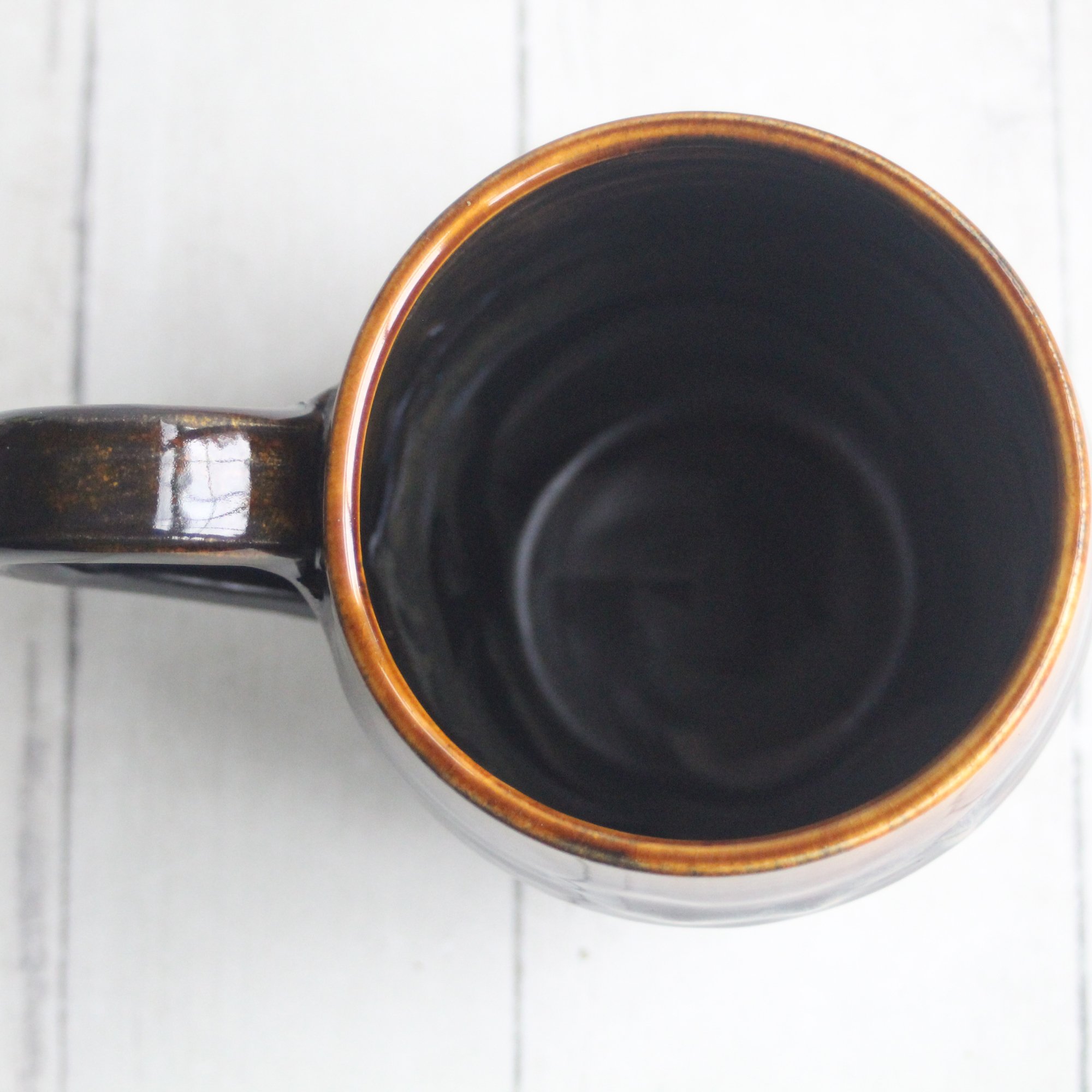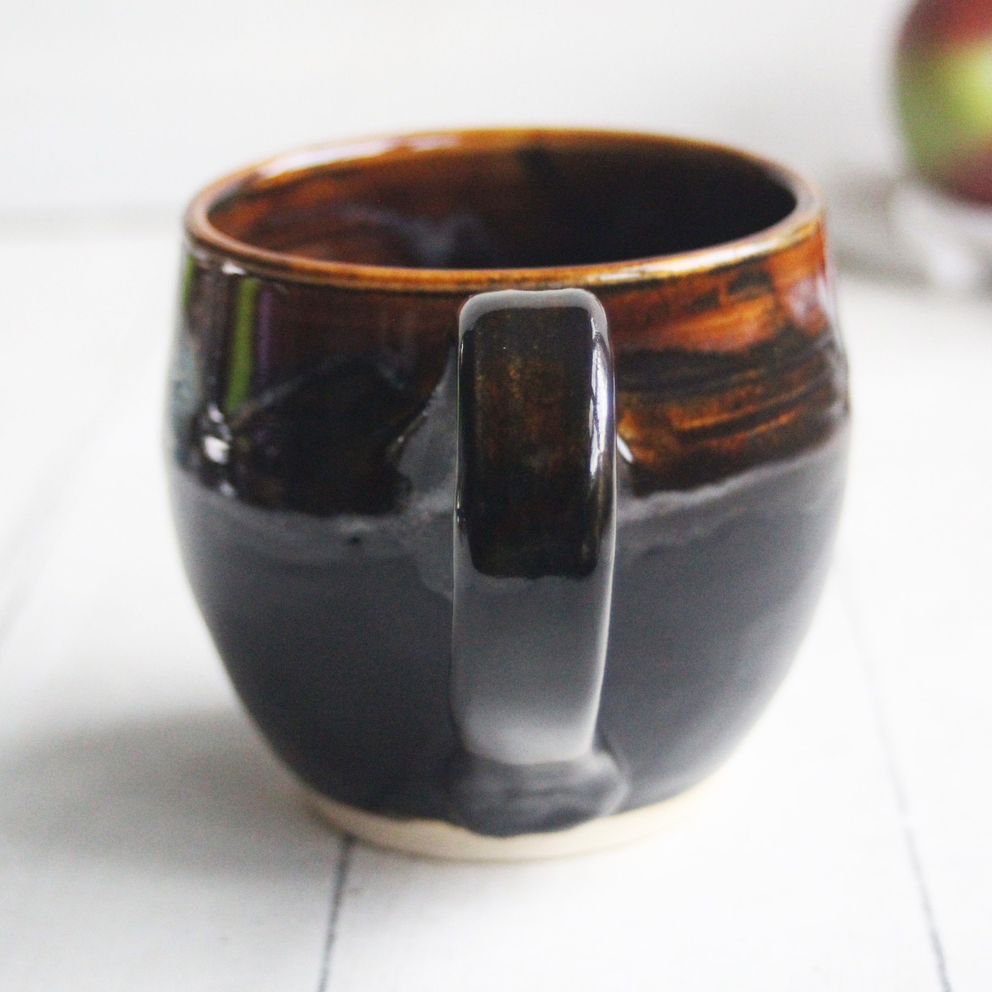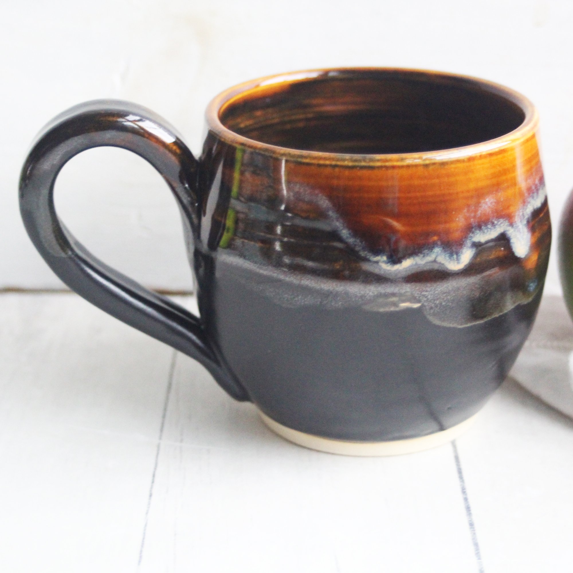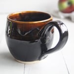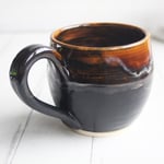 Amber Brown, and Matte Black Pottery Mug, 14 oz. Handcrafted Coffee Cup, Made in USA