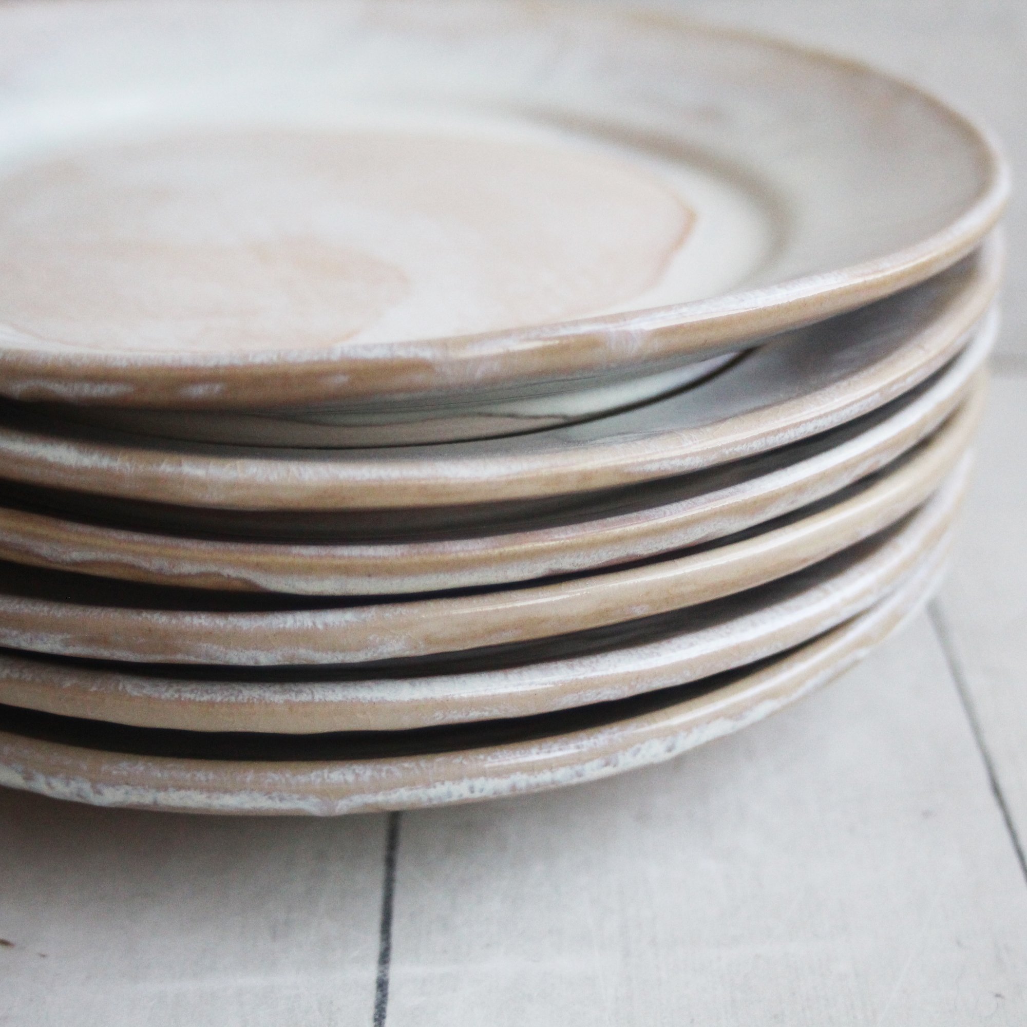 Custom Dinnerware for Colleen - 6 Salad and 4 Dinner Plates in Creamy White and Ocher Glaze