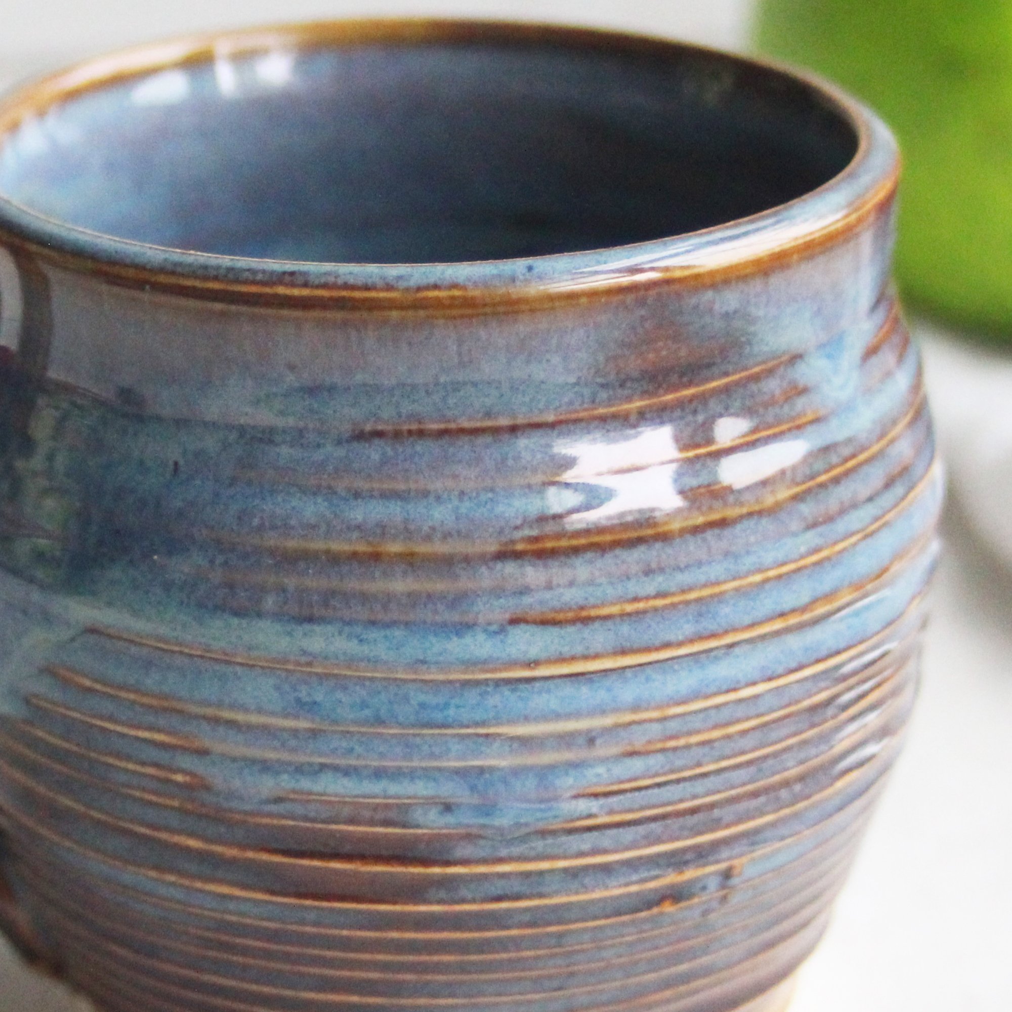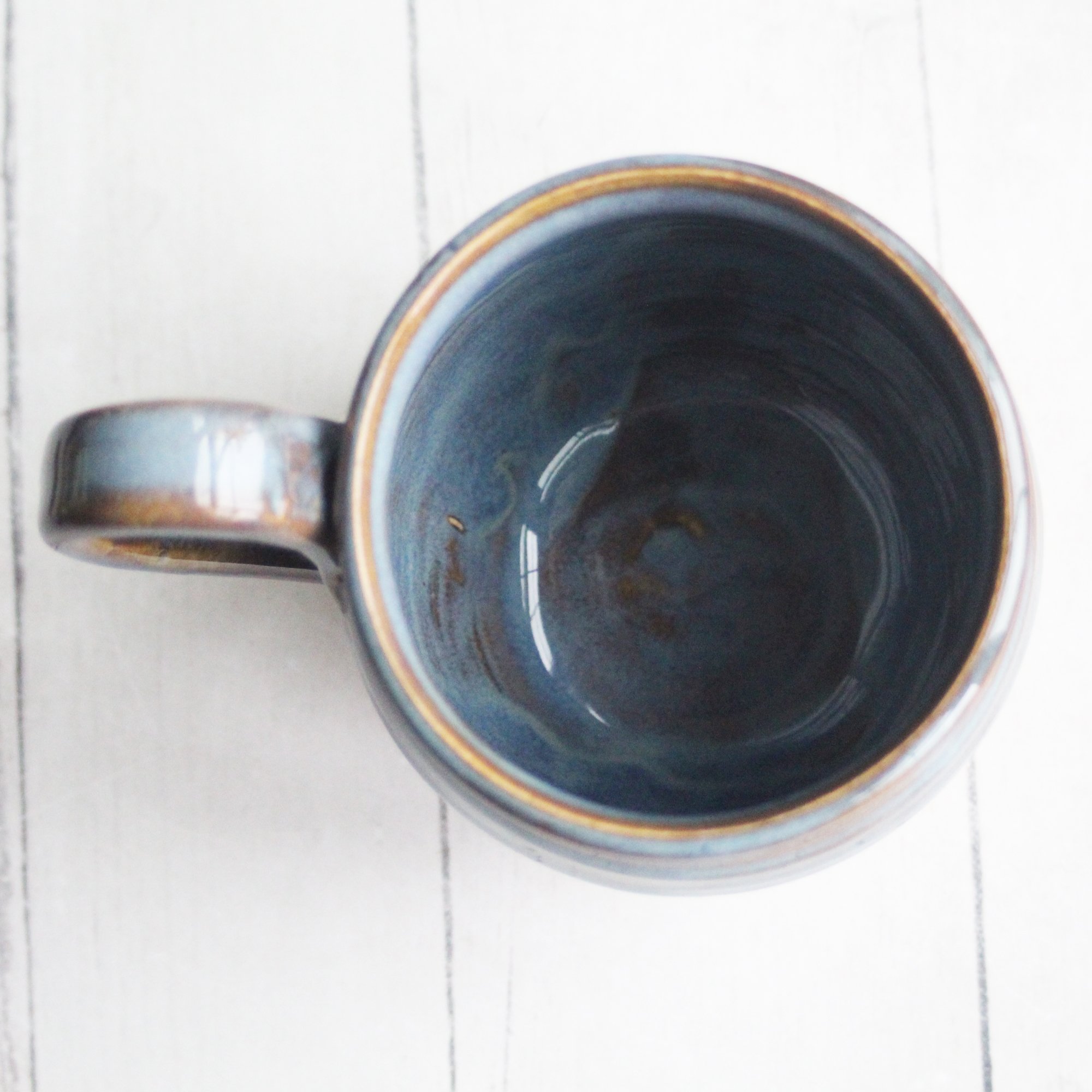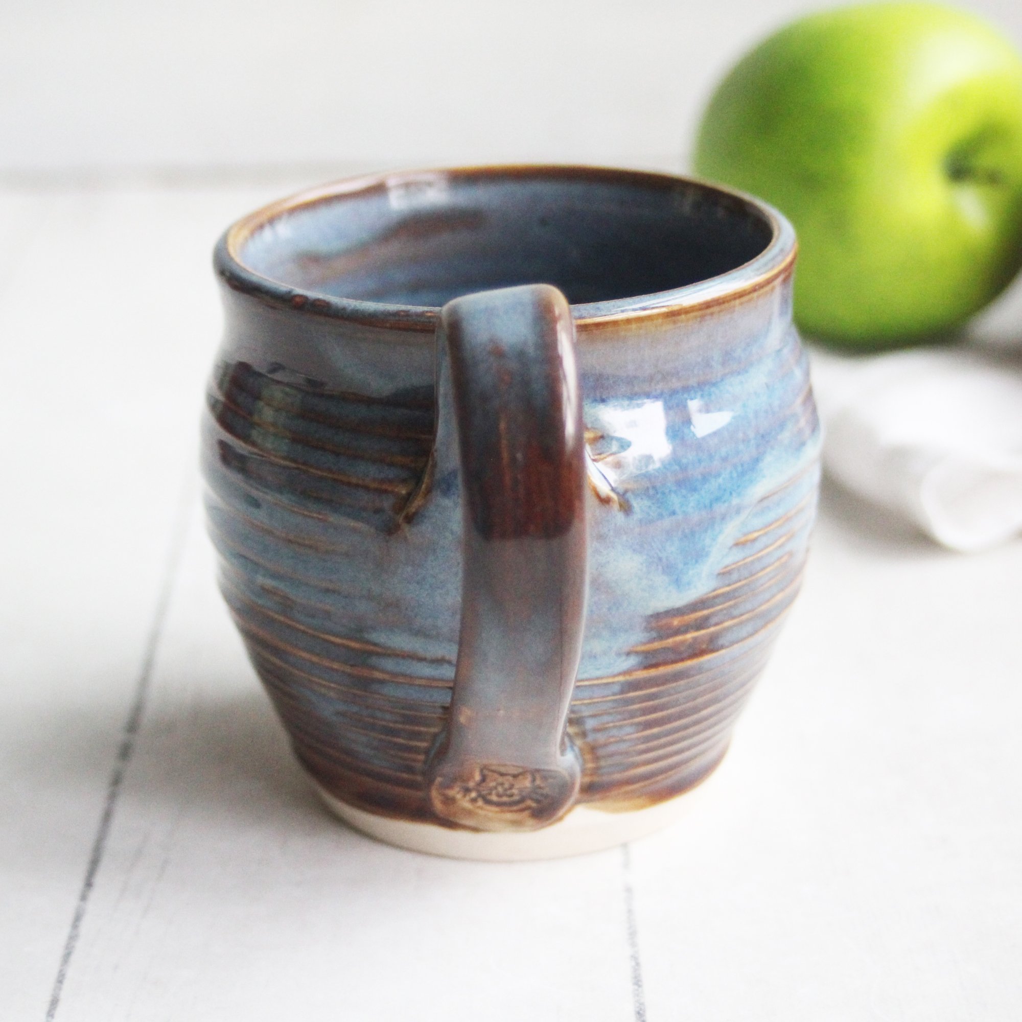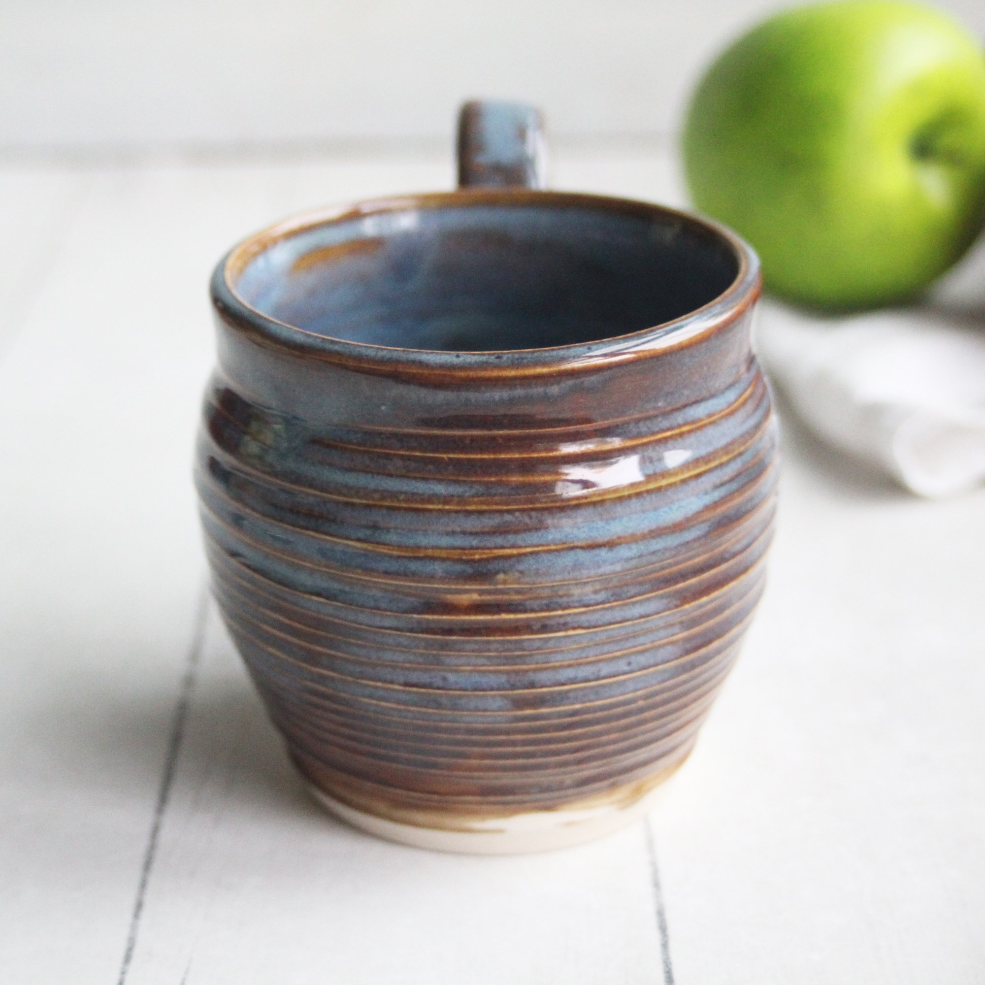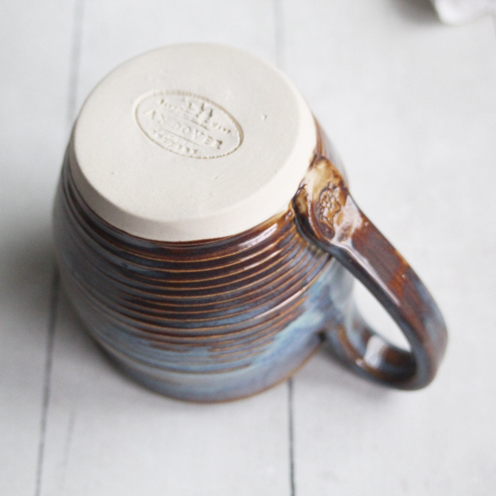 Earthy Blue and Amber Brown Mug, 12 Ounce Handcrafted Pottery Mug, Made in USA