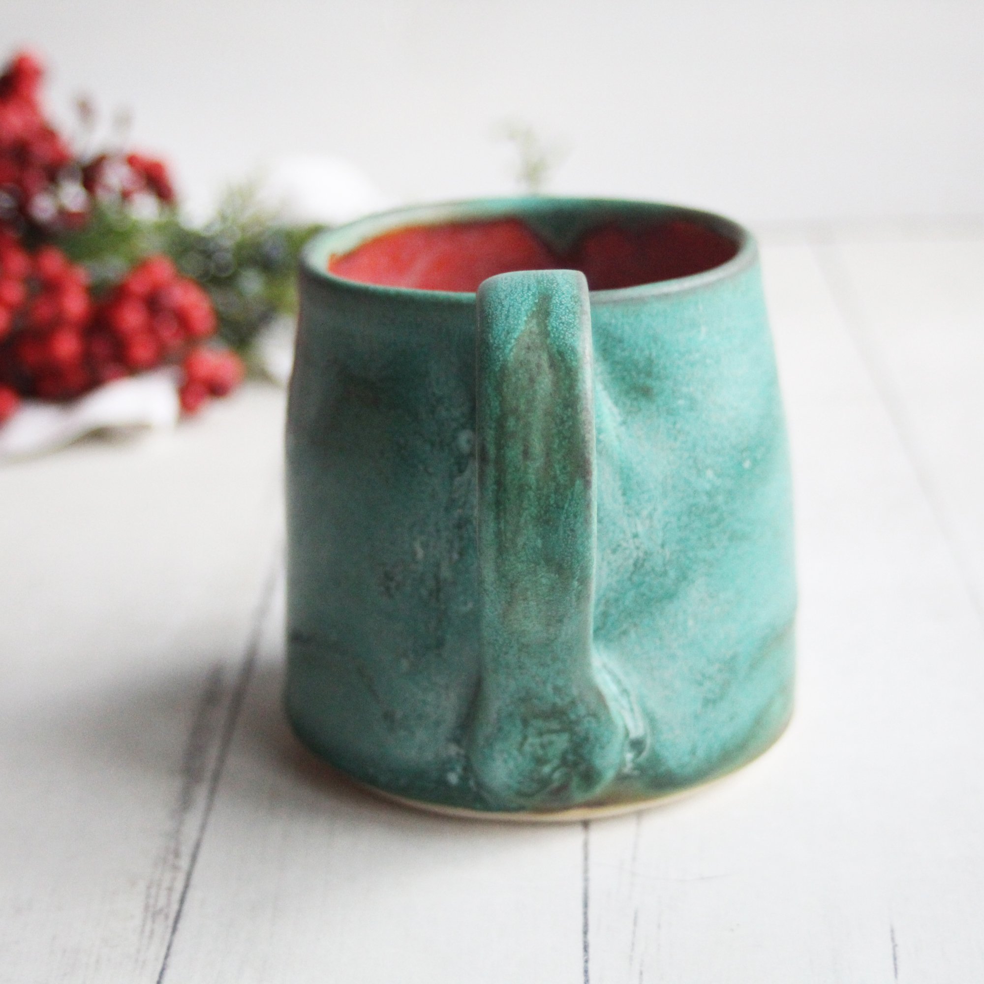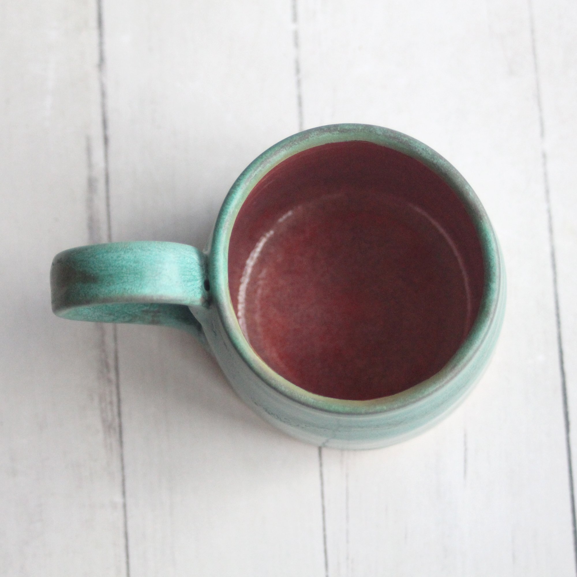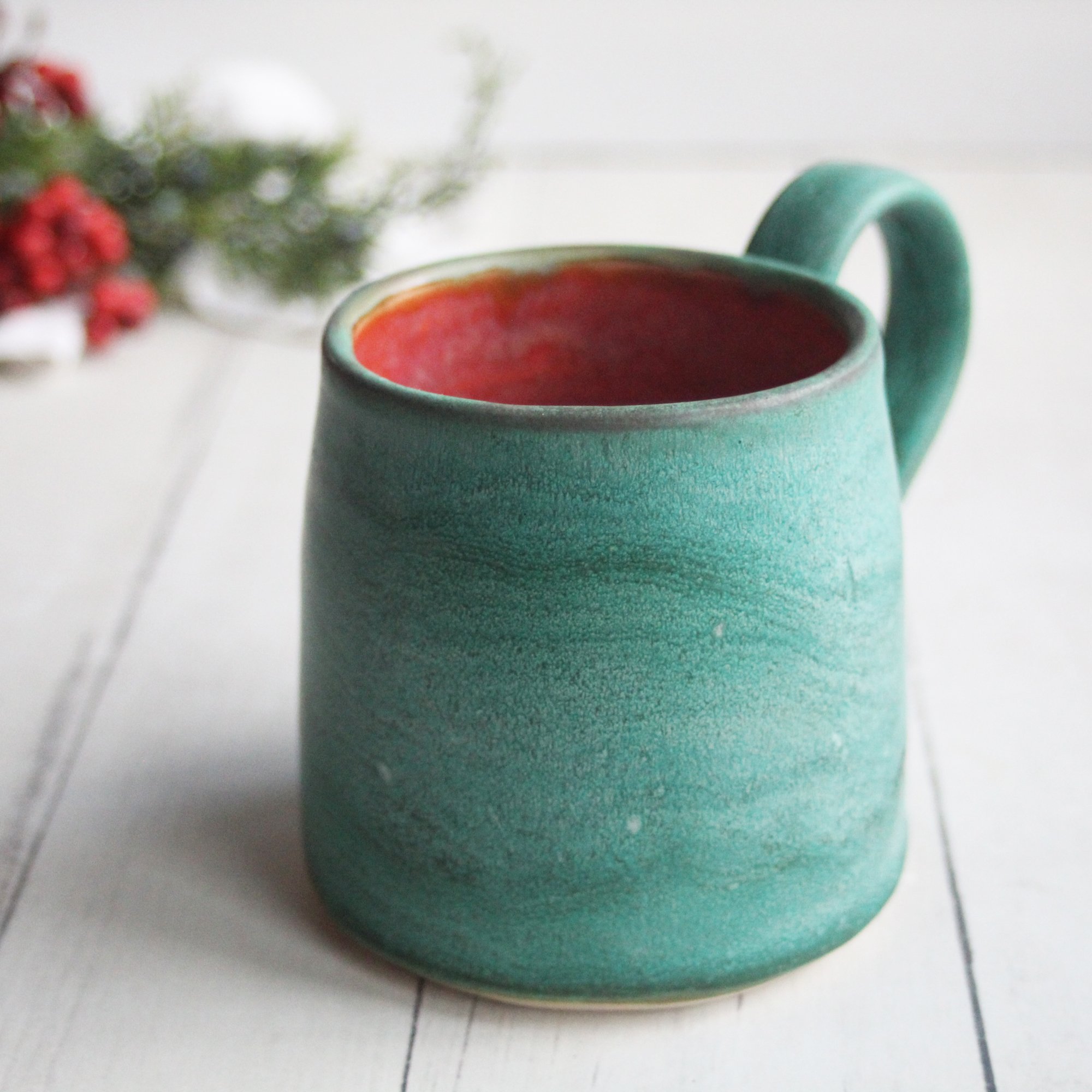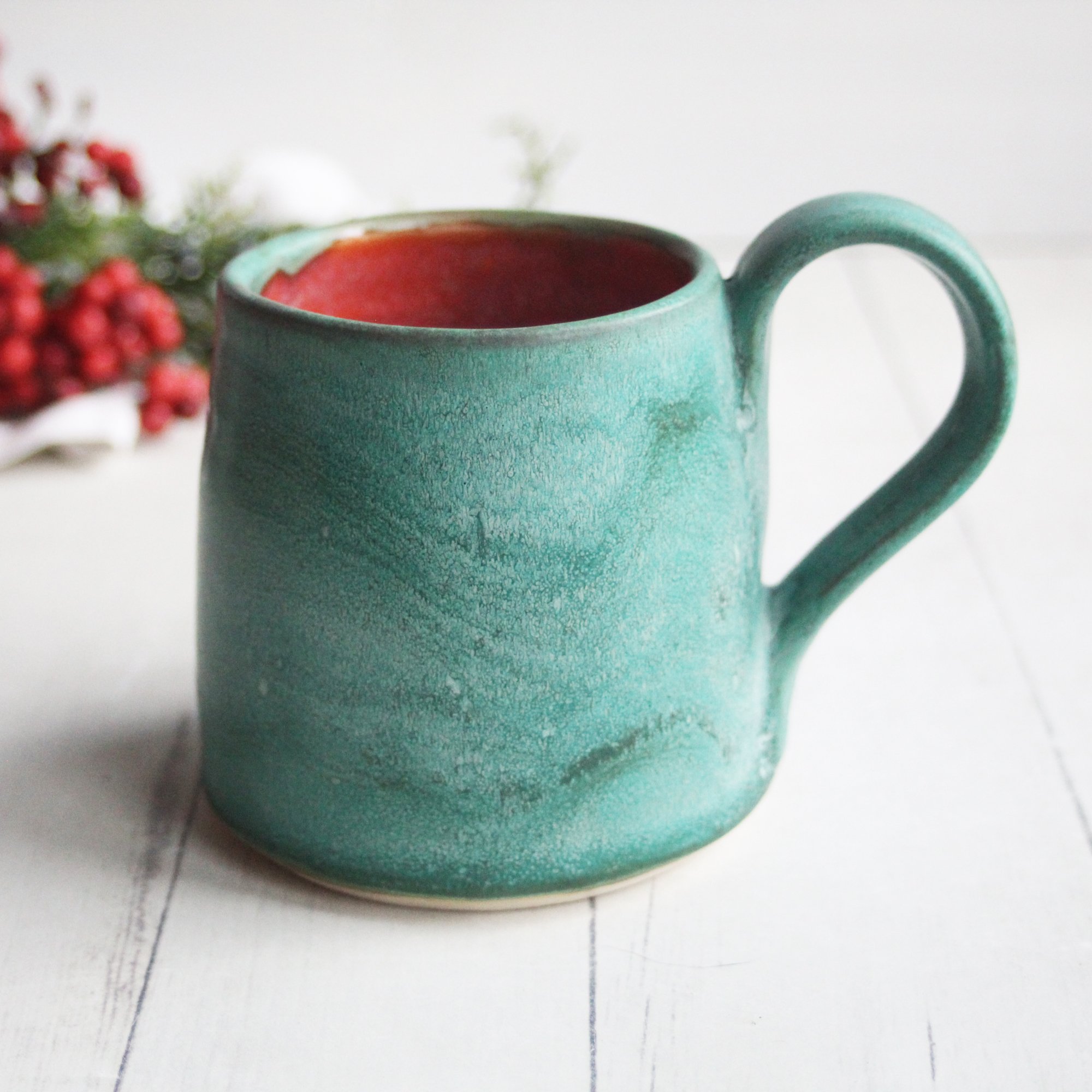 Rustic Mug in Matte Copper Green and Red Glazes, 12 Ounce, Made in USA