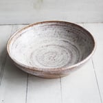 This rustic bowl was created using a brown speckled stoneware clay, was hand thrown and trimmed on my pottery wheel. It was bisque fired and glazed with a beautiful toasted marshmallow glaze that allows the natural speckling of the clay to show through and then high fired in my electric kiln.