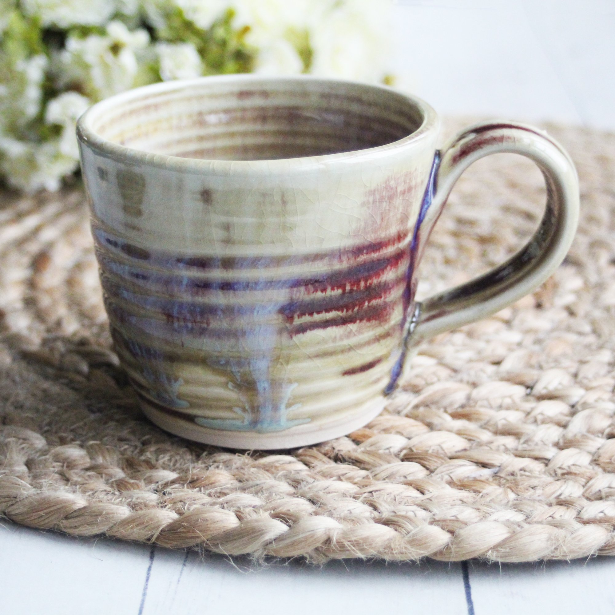 Ox Blood Red and Beige Crackle Pottery Mug, Handmade in USA