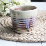 This rustic mug was hand thrown and trimmed and carved on my pottery wheel using a white stoneware clay. It was bisque fired and glazed with a deep red glaze. It was then high fired in my electric kiln.