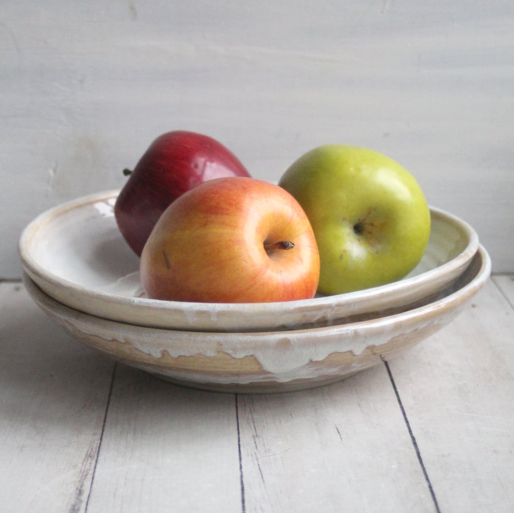 Pair of Pasta Bowls in White and Ocher Glaze, Handmade Pottery Bowls, Made in USA