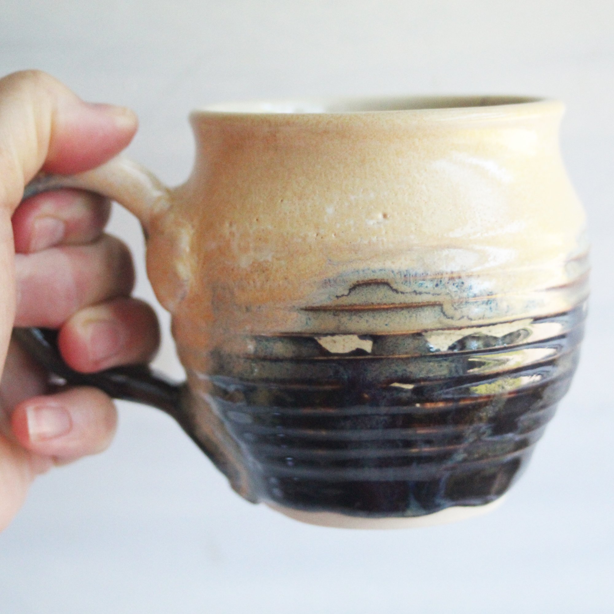 Pottery Mug in Buttercream and Brown Glazes, 15 oz. Stoneware Coffee Cup, Made in USA No file chosen