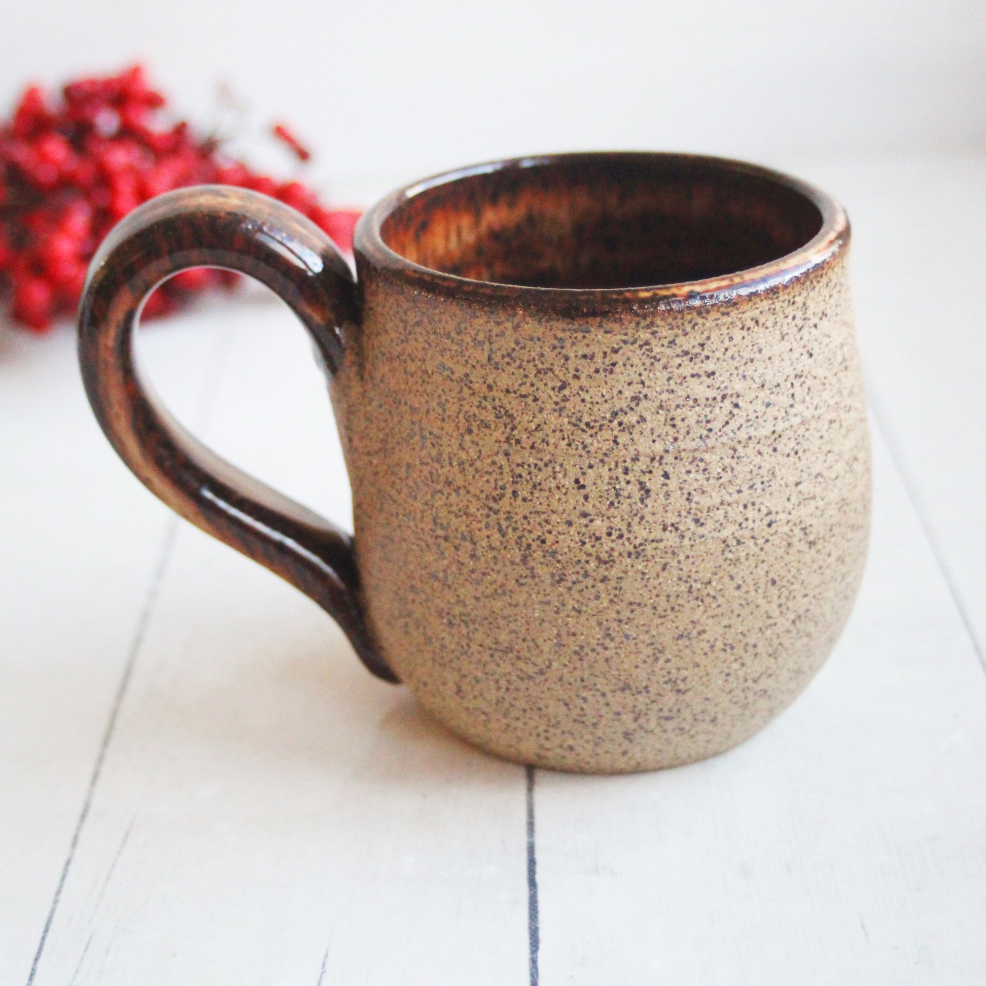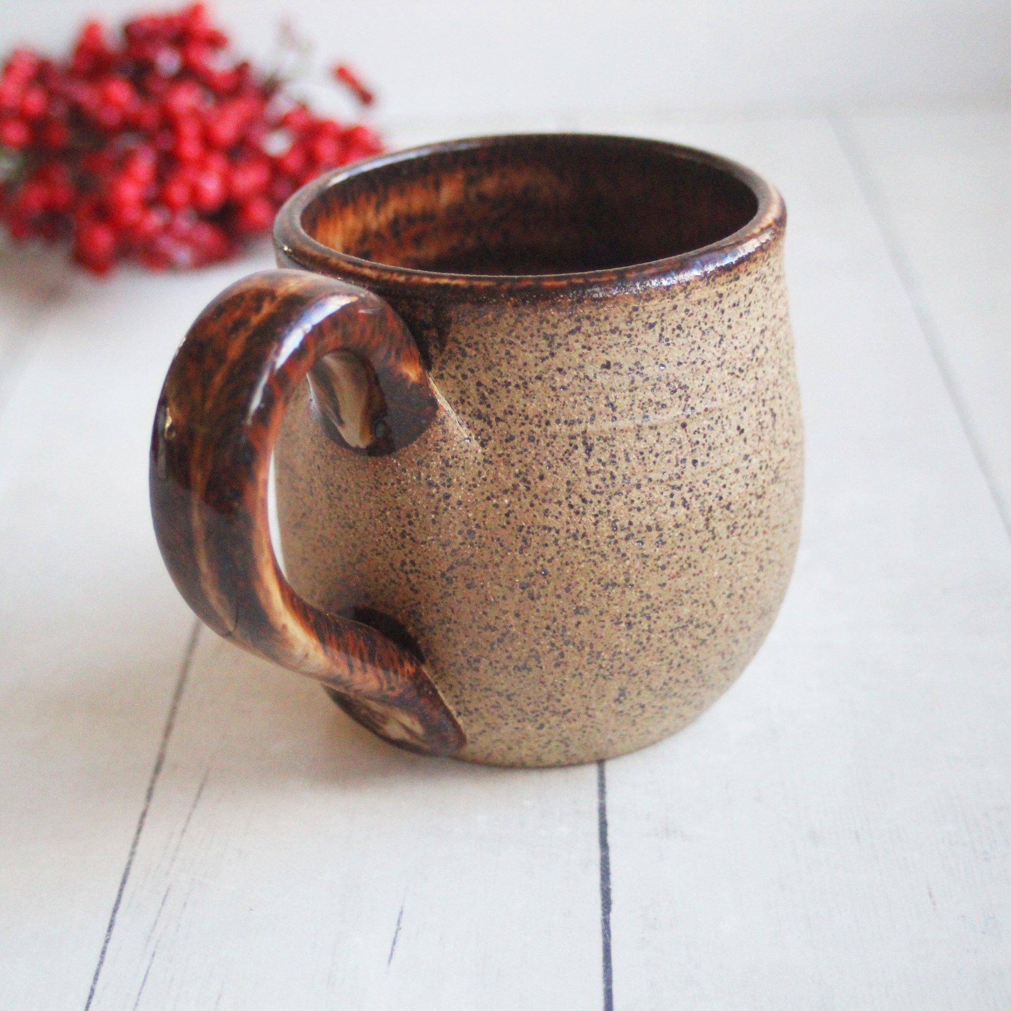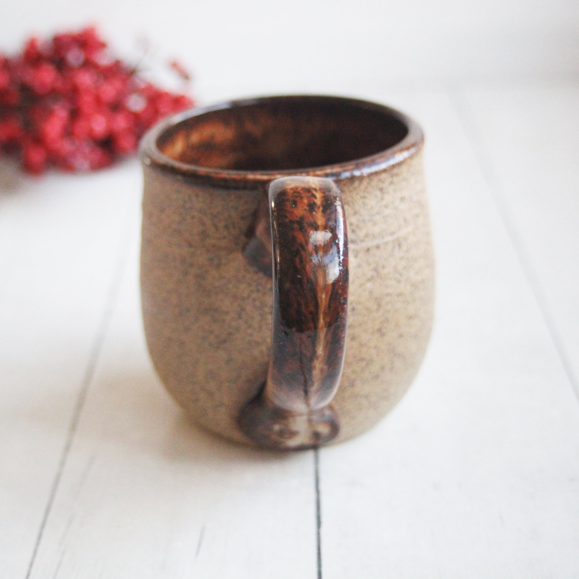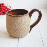Rustic Brown Raw Stoneware Pottery Mug, 14 Ounce Handmade, Made in USA