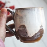 This mug just oozes with rustic charm, it was hand thrown and trimmed on my pottery wheel using a brown speckled stoneware clay. It was bisque fired and glazed with drippy creamy toasted milky glaze that allows the natural speckles of the clay to show through. It was then high fired in my electric kiln. This unique cup will compliment any rustic, primitive or minimalist decor. Approximate size: 3.5" across the top rim and 4" high, holds 14 oz. of liquid. *If this is being sent as a gift please let me know, I'm happy to include a note card with your message the the recipient. Please put your message in the "note to seller at check out". *Shipping is $17 for USPS priority mail. *If you are sending this as a gift please let me know, I am happy to include a personal message from you to the recipient. View more mugs and cups look here