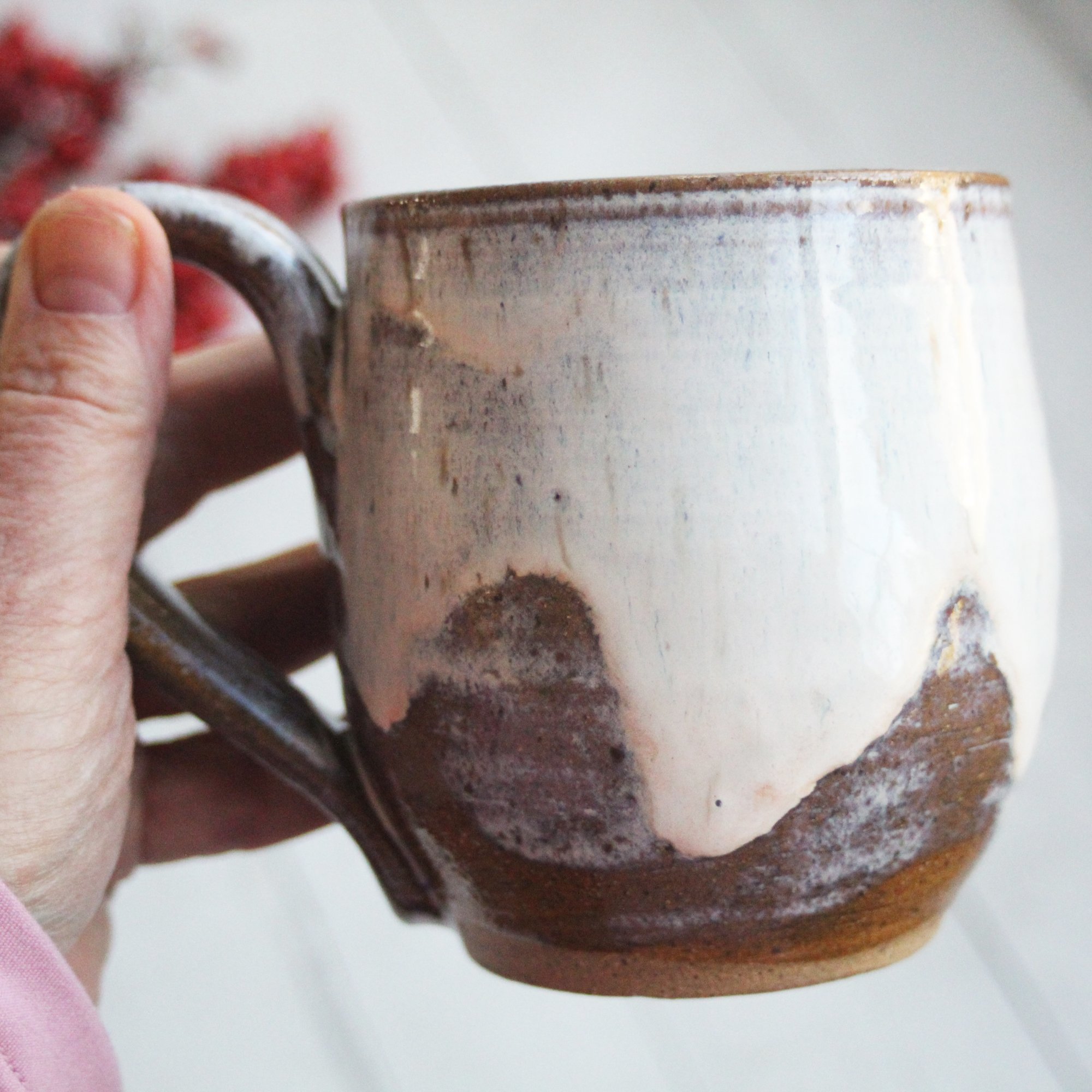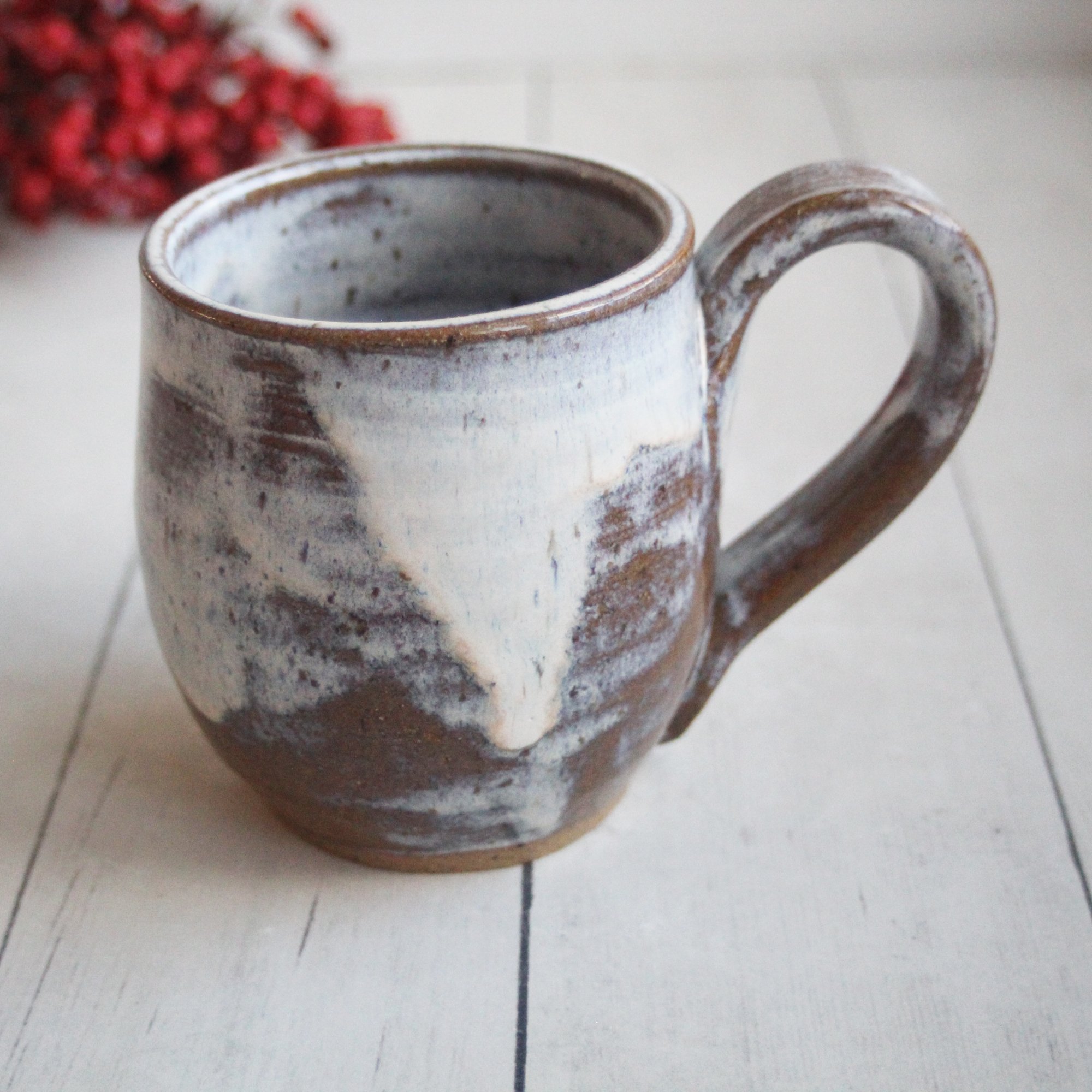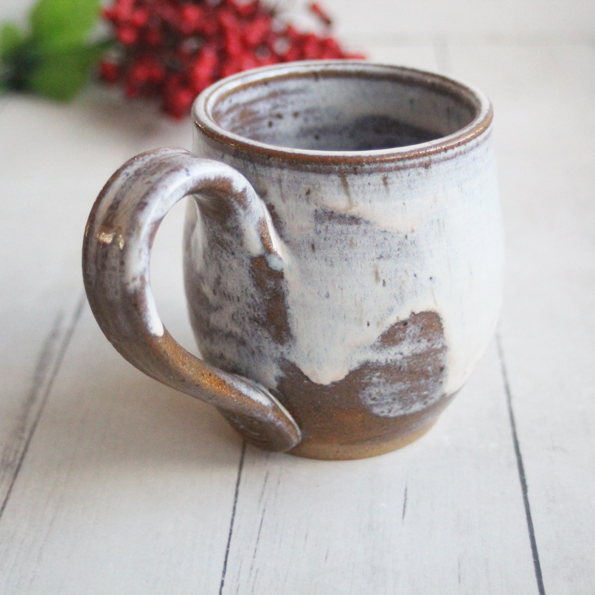 Rustic Pottery Mug in Marshmallow Glaze, 14 oz. Handcrafted Coffee Cup, Made in USA