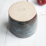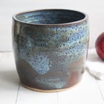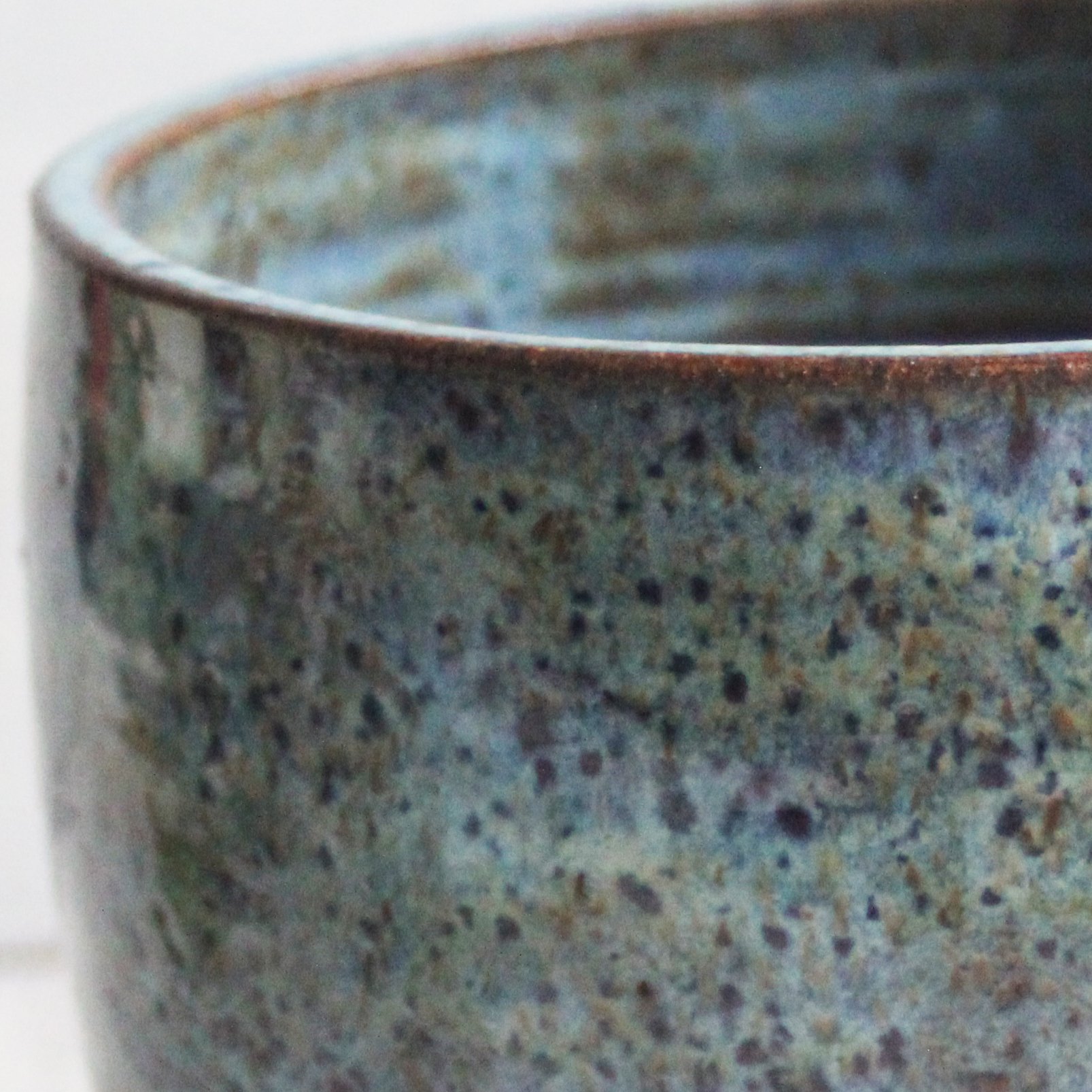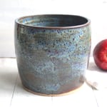 This large utensil holder was hand thrown on my pottery wheel using a brown speckled stoneware clay. It was bisque fired and glazed with a beautiful rustic blue and green glaze that allows the natural speckling of the clay to show through, it was then high fired in my electric kiln.