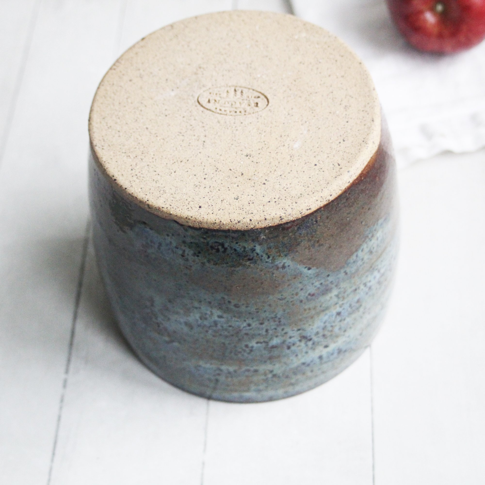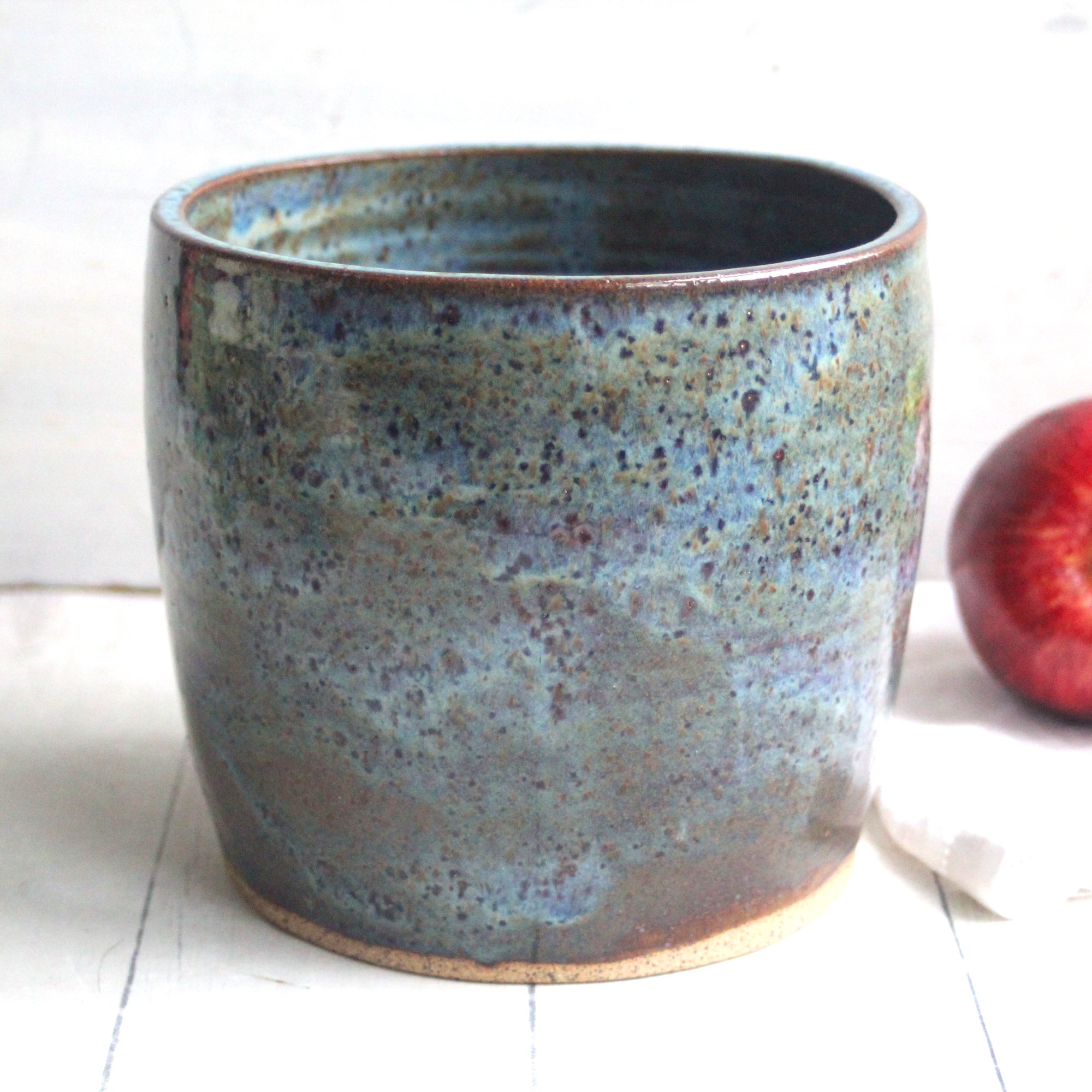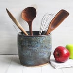 Rustic Stoneware Utensil Holder in Speckled Blue and Green, Hand Made in USA