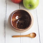 This salt cellar was hand thrown and trimmed on my pottery wheel using a brown speckled stoneware clay. It was bisque fired and carefully glazed on the inside with rich brown glaze, the outside was left unglazed and lets the natural raw stone speckling of the stoneware to show. It was then high fired in my kiln.